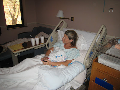 Nearly two hours after giving birth, mommy gets to hold little Hank for the first time!